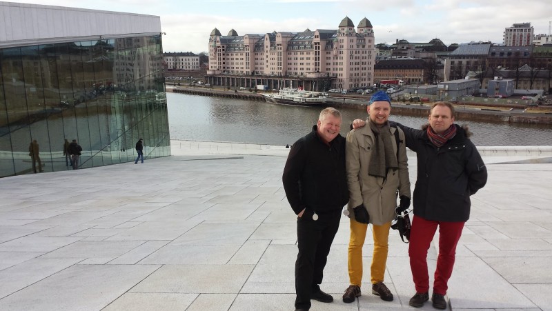 Hér erum við tenorarnir þrír á þaki óperuhússins í Oslo en þangað fórum við s.l. vetur til að vinna í tónlist... Við vorum reyndar ekki að syngja í óperhúsinu í þetta skiptið en hver veit nema að því komi einhvern daginn.