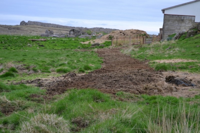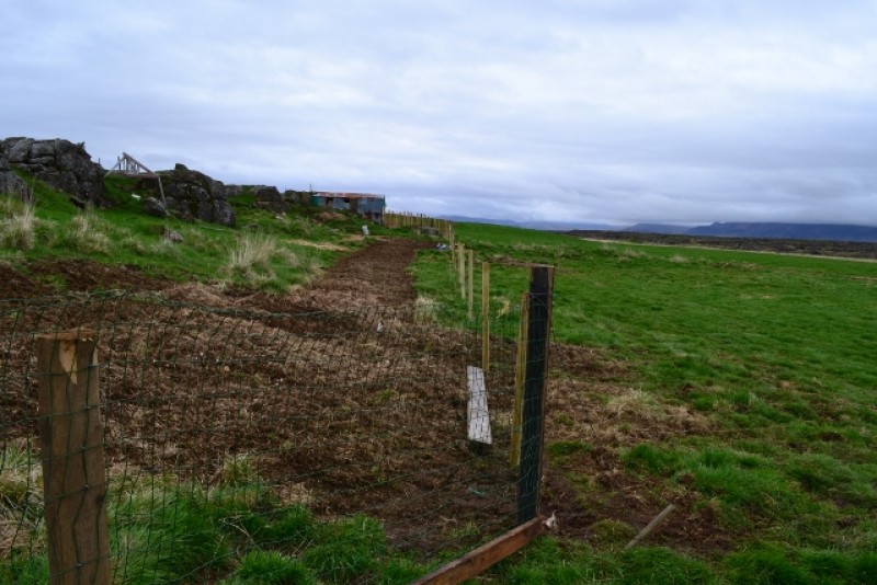 Um er aðræða fjögur skjólbelti alls, mismunsndi löng en með þrem til fjórum röðum skjólplantna, mismunandi tegundir eftir jarðvegi og aðstæðum hvers svæðis. 400 metrar alls sé miðað við einfalda röð.