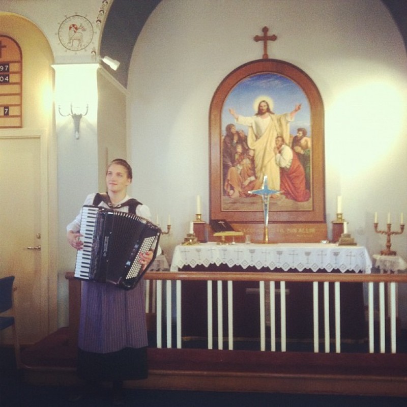 I'm a keyboard player and backup singer for the band Boogie Trouble. I'm also a supervisor at the violin and accordion section at Tónastöðin ehf.