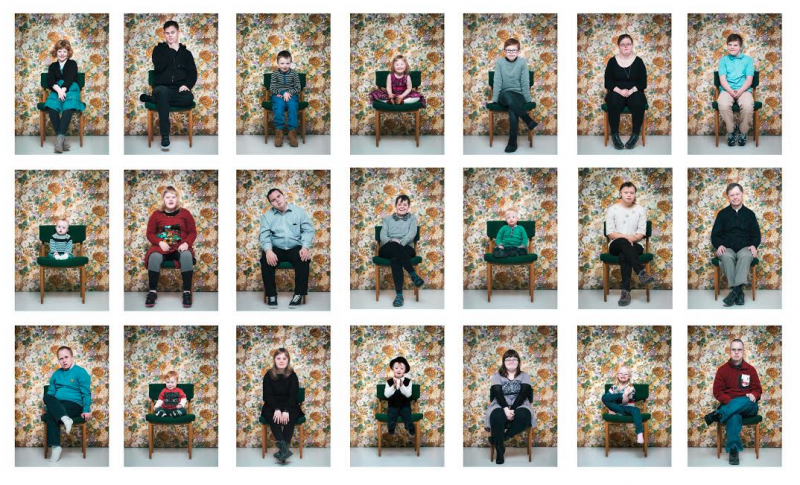 Sigga Ella portrays these 21 individuals in the same setting; sitting in the same chair, facing the camera, with the backdrop of a colorful flower wallpaper. The lighting is plain and simple and serves this purpose well. Sigga Ella carefully controls the setting, keeping in mind, not to draw attention to anything but the subject itself. By doing so, each individual stands out and there is nothing that distracts the viewer from the person. The colorful and happy backdrop relates to the diversity and colorfulness of the human race. It shows us that all kinds of flowers can grow and flourish together, and we should also cherish the diversity of humans. Although Sigga Ella controls the setting, she does not control the people but rather lets them show us who they are. Each photograph shows us a person with his or her own special characteristics. Some are smiling, others giggling and hands and feet are placed freely. Within the setting Sigga Ella obviously gives them full freedom which brings out their uniqueness as individual human beings. The clothes they are wearing are all different as well and that too accentuates the fact that these people are by no means all alike, although they share the same syndrome."First and foremost I am" is an eyeopener for the beauty and diversity of mankind and makes us wonder if the future without this diversity is desirable.