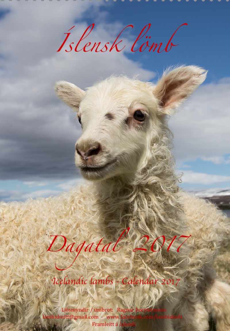 The Lamb Calendar (Lambadagatalið) is adorned with large and beautiful portraits of newly born lambs photographed in their natural environment. The photographs capture their beauty, personality and the miraculous experience embodied in a new life. The calendar is printed in an A4 layout (height of 297 mm and width of 210 mm) where each month has its own page. It is spiral bound with an embedded hook allowing for easy display. The calendar has information on Icelandic holidays as well as flag days, the names and arrival dates of the Icelandic Yule Lads, the names and starting dates of the old months along with various days related to Icelandic history. The calendar is thus not only decorative but also contains nuggets of Icelandic history and is a perfect gift for the holidays. The calendar can therefore extend its lifetime over the traditional year because of the beautiful photographs and included knowledge.