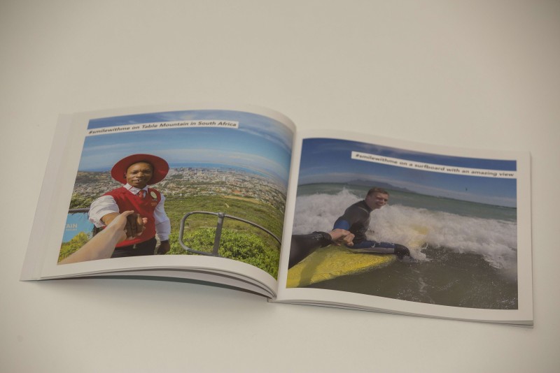 Ég valdi alveg sérstakt verkefni til að styrkja. Ágóðinn fer allur í Tómstundasjóð flóttabarna á Íslandi og finnst mér það kjörið verkefni þar sem í bókinni rétti ég fólki um allan heim höndina og fæ þau til að brosa. Með því að setja pening í þennan mikilvæga sjóð erum við að veita börnum frá ólíkum menningarheimum hjálparhönd við að stunda íþróttir og tómstundir og í leiðinni fá þau til að brosa. Að stunda tómstundir og íþróttir getur verið lykilatriði til þess að komast inn í samfélag og þar af leiðandi líða vel í því.