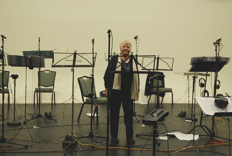 Borga (Guðborg Aðalsteinsdóttir), the receiver of the letters, visiting the studio during the recording sessions.