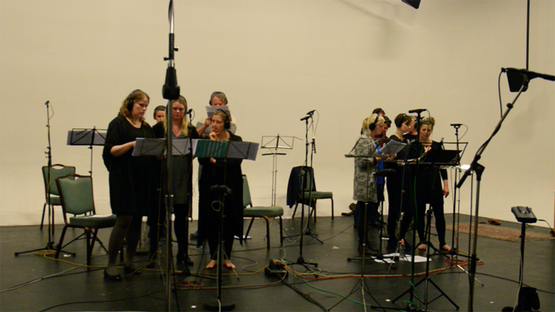 The vocal ensemble during recordings.