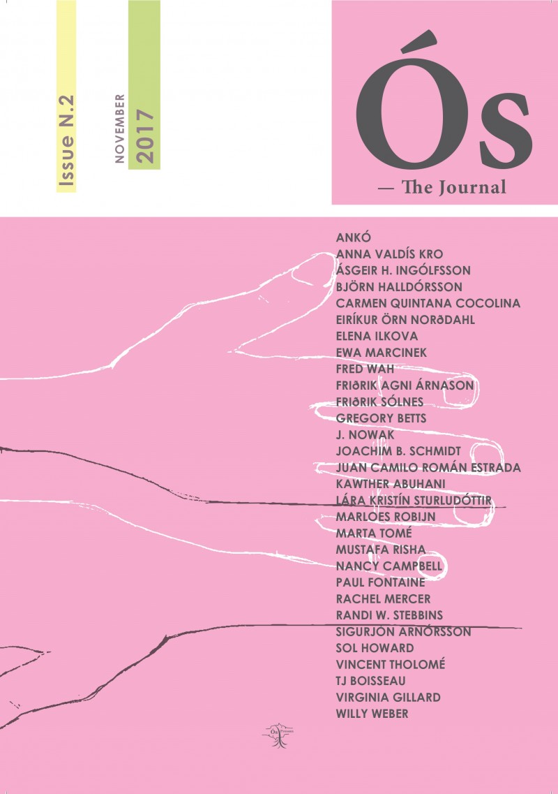 Ós Pressan is a non-profit initiative designed to support and promote new authors, to create an inclusive writing community and to challenge the reality of the publishing industry in Iceland. In February 2017, Ós Pressan started a call for submissions for the second journal, after having already published a multilingual journal in November 2016. Both emerging and established writers were invited to submit works in any language.