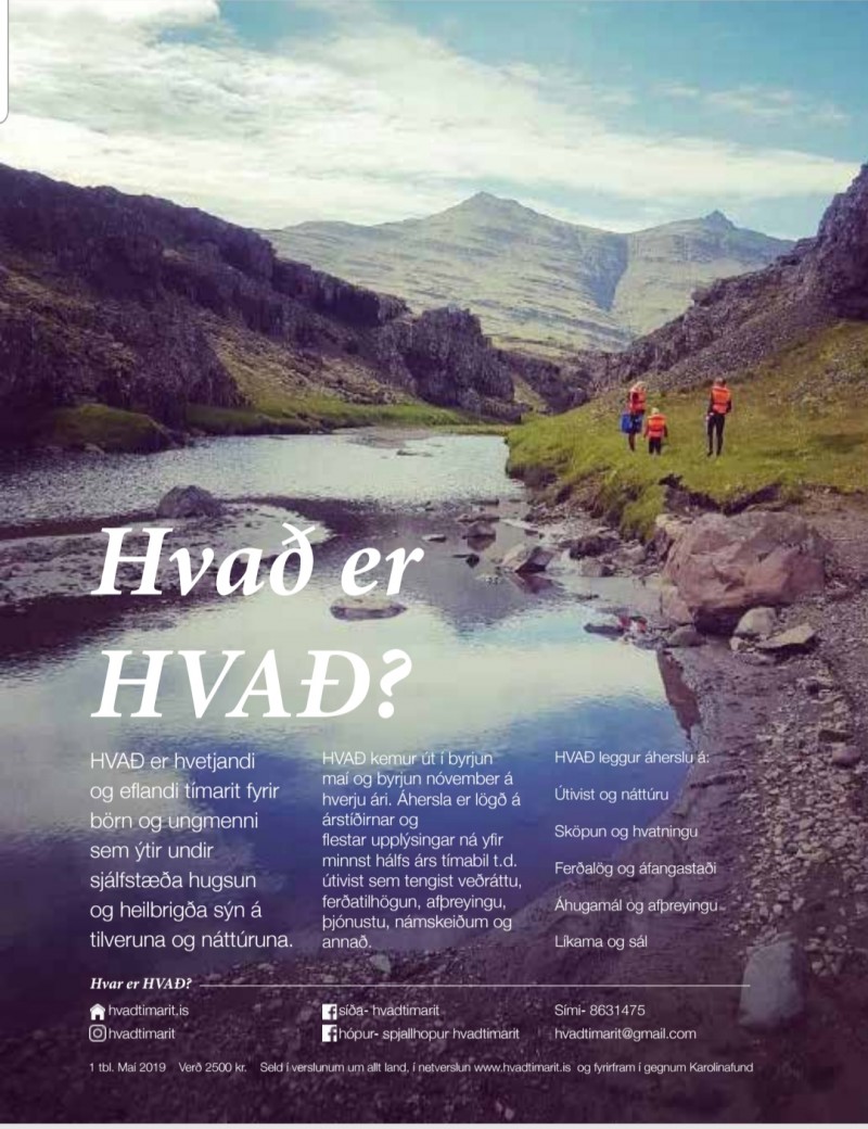 HVAÐ kemur út í byrjun maí og byrjun nóvember á hverju ári. Fyrsta tölublað í maí 2019. Áhersla er lögð á árstíðirnar og flestar upplýsingar ná yfir minnst hálfs árs tímabil td. útivist sem tengist veðráttu, ferðatilhögun, áfangastöðum, afþreyingu, þjónustu, námskeiðum og fleira.