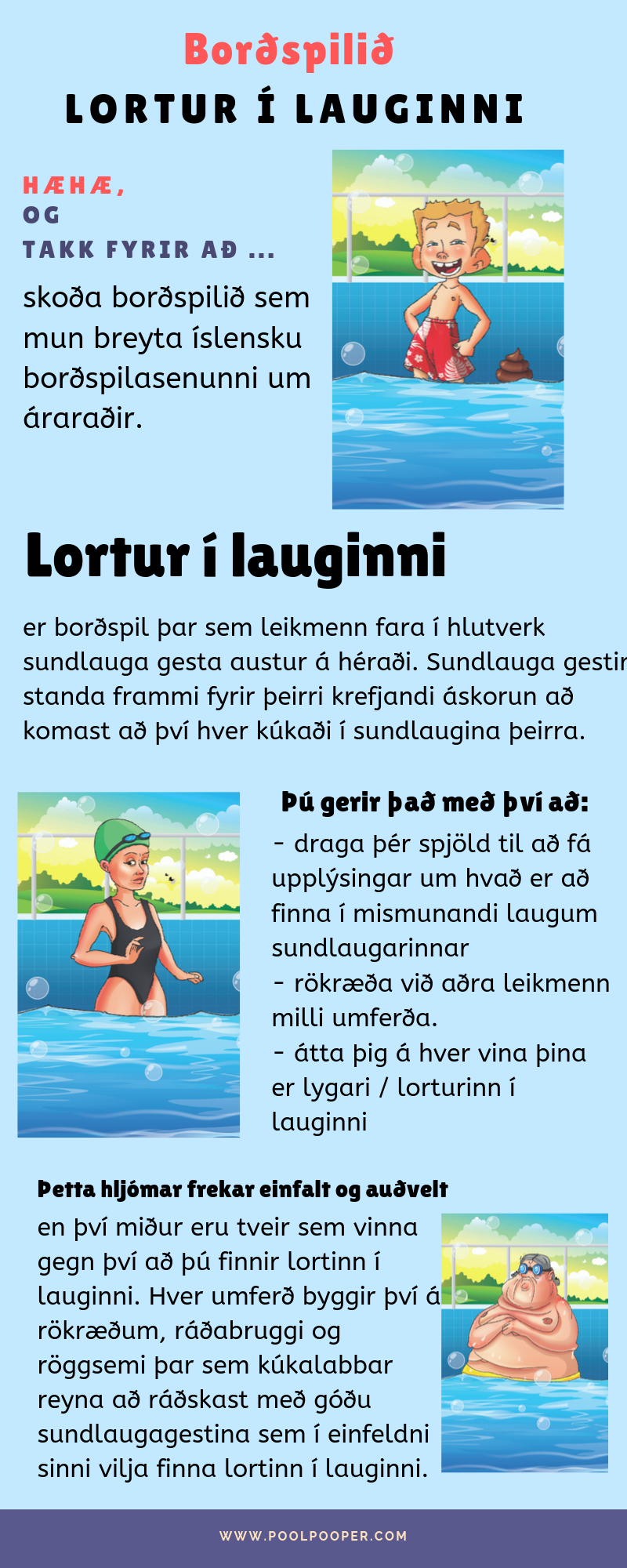 Spil hannað fyrir séríslenskar aðstæður þar sem 5-7 leikendur sem komast að því hver lortaði í laugina