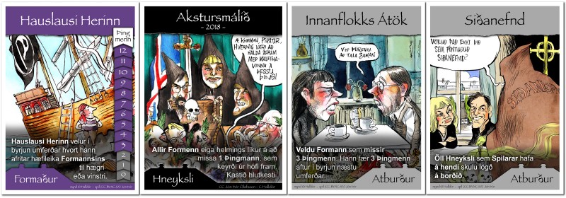 Í spilinu geta spilarar kosið um málefni og stundað pólitíska spillingu til að fá fleiri þingmenn, ásamt því að láta aðra spilara missa þingmenn í hneykslum (nema þeir spili út "Lögbanni á fjölmiðla" til að stöðva hneykslið eða "Hvítþvott" til að fá þingmennina aftur).