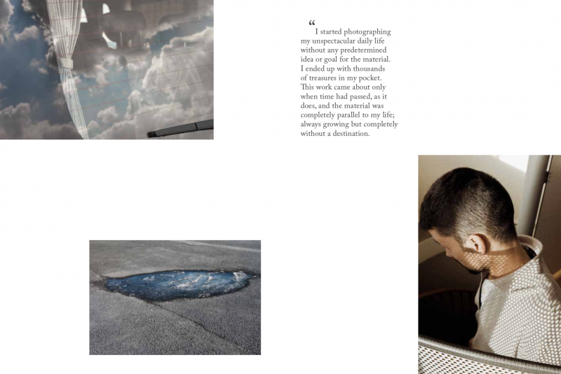 I started photographing my unspectacular daily life without any predetermined idea or goal for the material. I ended up with thousands of treasures in my pocket. This work came about only when time had passed, as it does, and the material was completely parallel to my life; always growing but completely without a destination.