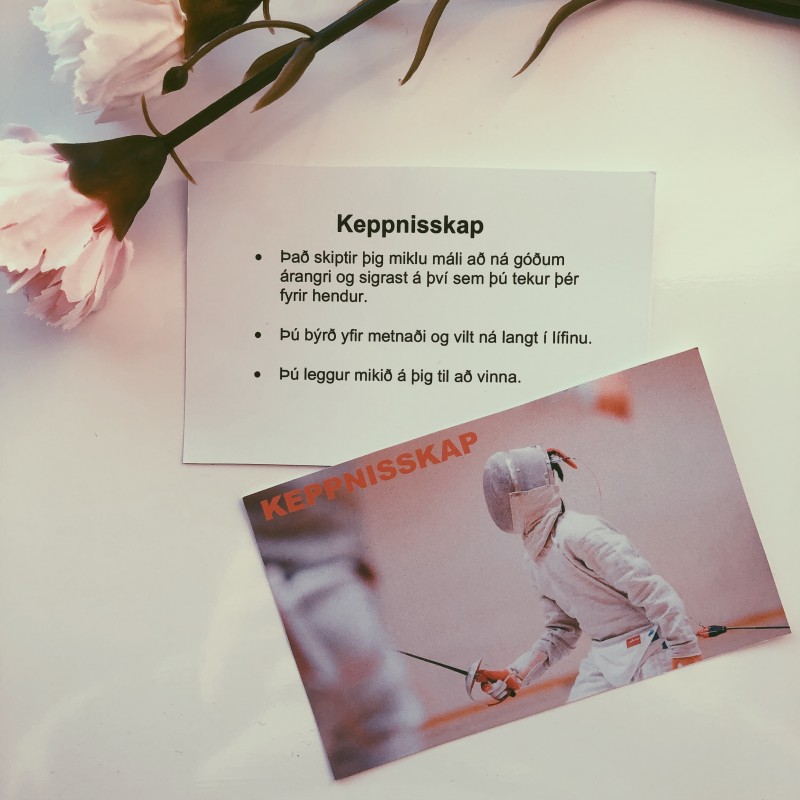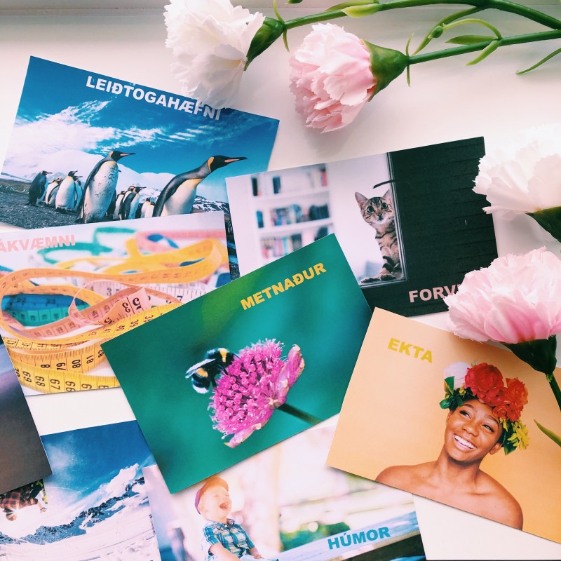 Þessi spil eru á íslensku, góð í sjónrænni vinnu með litríkri framhlið og 3 setningum á bakhlið sem dýpka orðaforða og skilning á styrkleikanum sem er á framhliðinni. Spilin eru 45 talsins með leiðbeiningum að einföldum æfingum sem nýta má jafnt í einstaklings- sem hópavinnu.