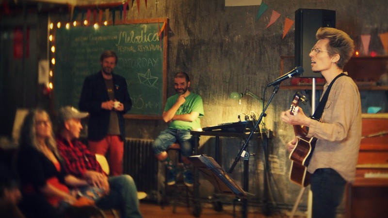 Since then he has performed here and there, in cafe´s and pubs, museums and swimming pools and even one time outside of Iceland.