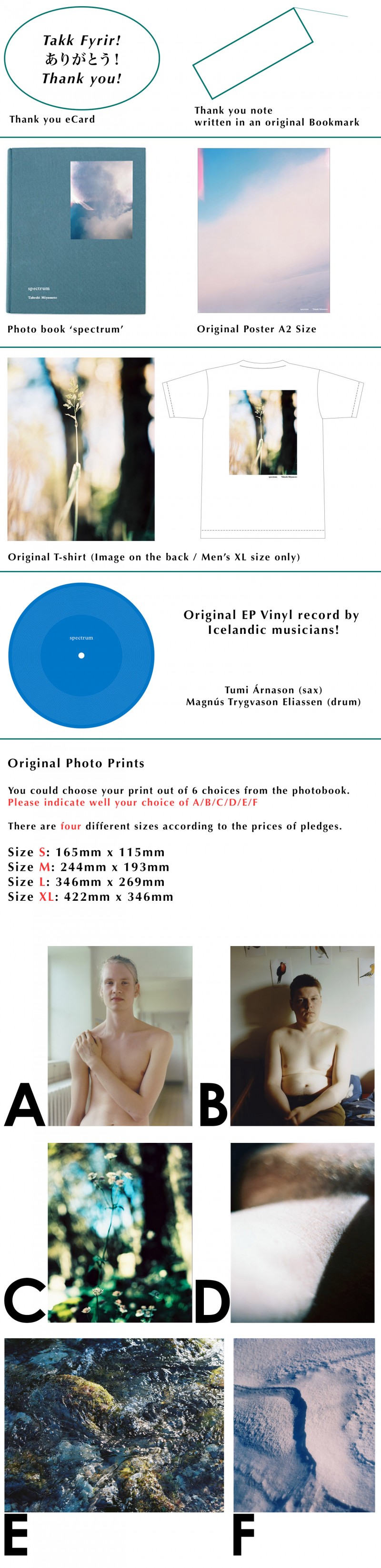 « Spectre » est le premier livre photographique de Takeshi Miyamoto. Il y traite de son introspection sur l'équilibre entre son corps et son image. Sa rencontre avec l'Islande et sa nature résonnait en lui, à la quête de la véritable conscience de soi. Il célèbre ainsi dans ce livre et tout au long de ses photographies de portraits, le cœur de cette beauté au travers d'un nouveau spectre de la masculinité.