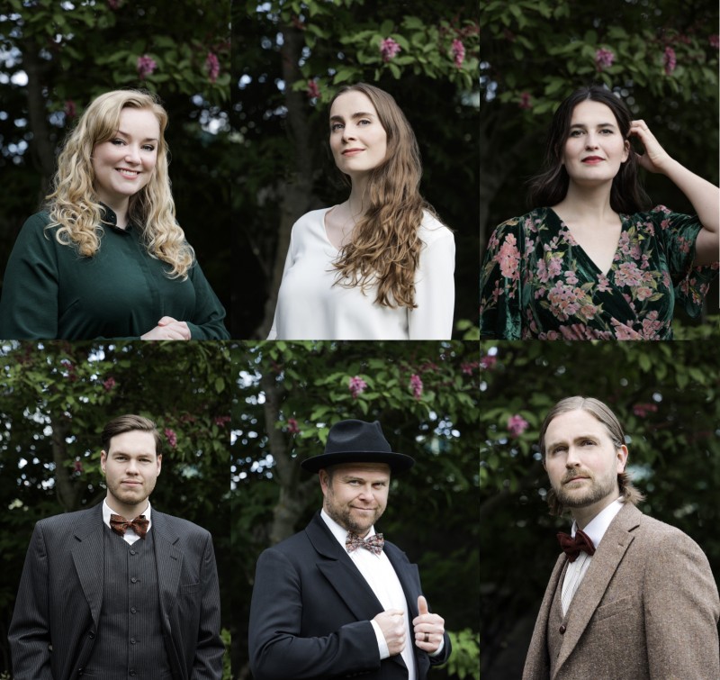 Einsöngvara sýningarinnar má sjá á myndinni hér að ofan. Systurnar Fiordiligi og Dorabella leika Lilja Guðmundsjóttir (til vinstri) og Kristín Sveinsdóttir (til hægri). Lilja og Kristín eru frænkur í raunheimum sem stunduðu báðar söngnám í Vínarborg og starfa nú hér á landi sem söngkonur, félagsráðgjafi og samfélagsgreinakennari. Jóna G. Kolbrúnardóttir (í miðju) leikur þjónustustúlkuna Despinu en Jóna nam söng í Vín og Kaupmannahöfn og starfar nú einnig á Íslandi sem söngkona ásamt því að vinna fyrir eldri borgara á Grund. Unnsteinn Árnason (til hægri) og Eggert Reginn Kjartansson (til vinstri) leika vinina Guglielmo og Ferrando sem eru elskendur systranna. En þeir eru einnig góðir vinir í raunheimum, lærðu söng í Vínarborg og störfuðu í Austurríki þar til leiðin lá heim til Íslands. Unnsteinn er enn með annan fótinn úti og syngur í óperum á Bregenzer Festspiele nú í sumar. Að lokum syngur Jón Svavar Jósefsson hinn slóttuga Don Alfonso sem nær að hrista upp í ástarsamböndum elskendanna sem virðast órjúfanleg. Jón Svavar hefur komið víða við í tónlistarsenunni á Íslandi undanfarin ár og sló nú síðast í gegn í Ástardrykknum í Þjóðleikhúskjallaranum.