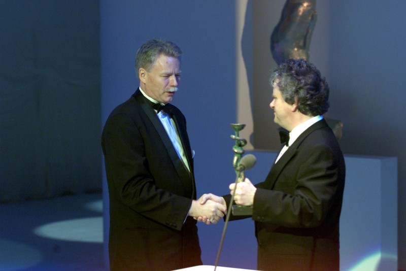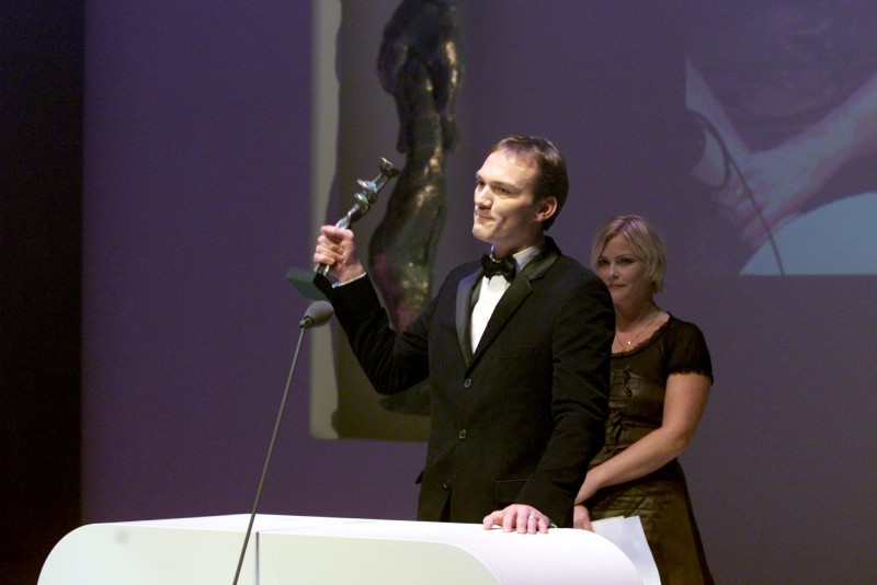 "Ég reyni nú að líta á þetta sem uppskeruhátíð og skemmtun fremur en keppni," sagði Ingvar E. Sigurðsson þegar hann tók við Eddu-verðlaunum fyrir hlutverk sitt í Englum alheimsins.