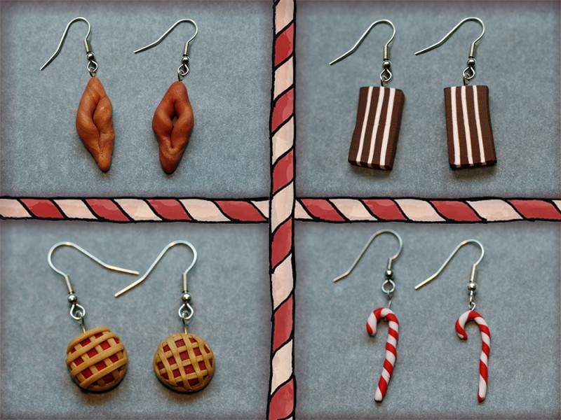 Fjórar tegundir af bakkelsis-eyrnalokkum eru í boði.