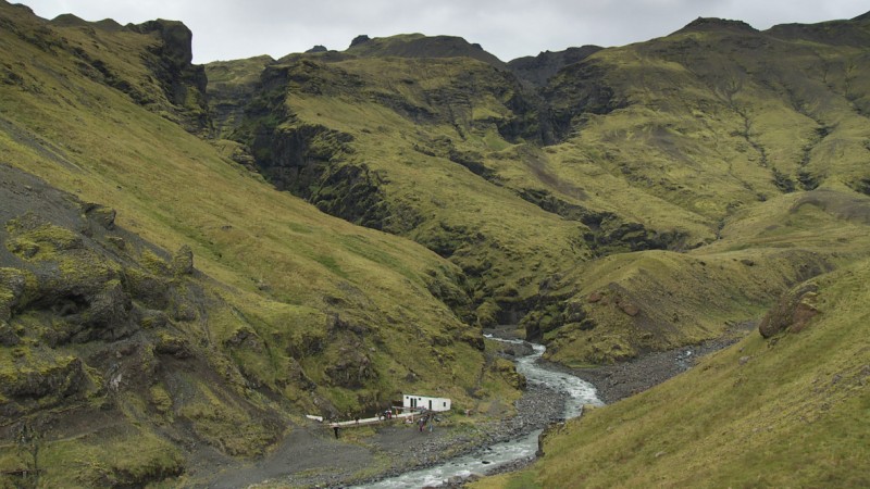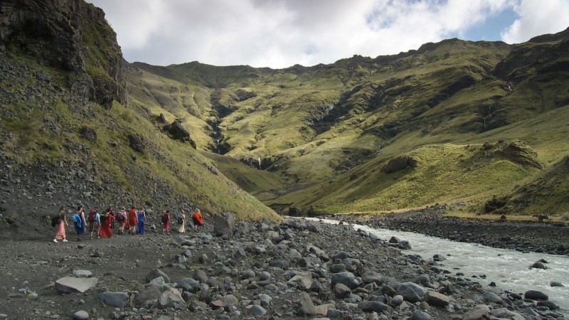 Sumarið2012: Listakonurnar Heike Baranowsky og Ursula Rogg komu frá Berlín til aðganga á íslensk fjöll. Það var við rætur Eyjafjallajökuls sem ævintýrið hófst: í djúpum dal fundu þær aldargamla steinhlaðna laug, þar sem heit uppspretta rennur saman við jökulvatnið og myndar kjörnar aðstæður til böðunar. Er listakonurnar mættu á staðinn tók á móti þeim syngjandi kór, ofan í lauginni, enfullar undrunar á krafti og fegurð þessa augnabliks ákváðu þær síðar að reyna að endurskapa atburðinn.