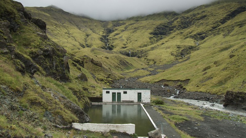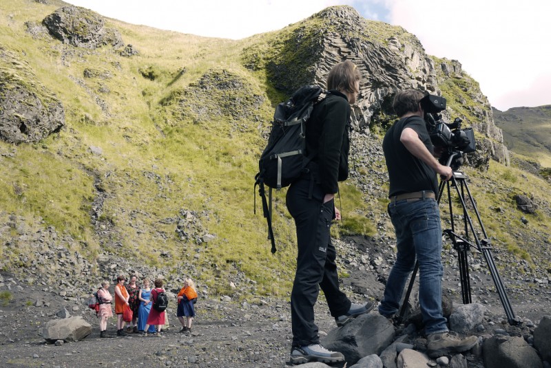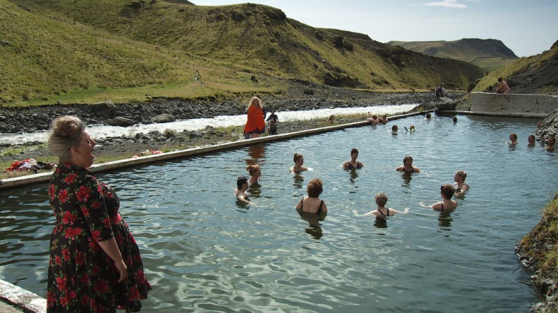 Summer 2012: The artist Heike Baranowsky and Ursula Rogg had come from Berlin to go for long distance walks in the mountains of Iceland. It was at the foot of the volcano Eyjafjallajökull that everything started: deep in its valley it holds a unique one hundred year old, brick-built pool, where in all weather hot water springs mix with glacier water to a perfect bath temperature.When the artists arrived there, a choir was singing in the pool. They experienced that as a happening of such power and beauty that they decided later to try to recall that moment.