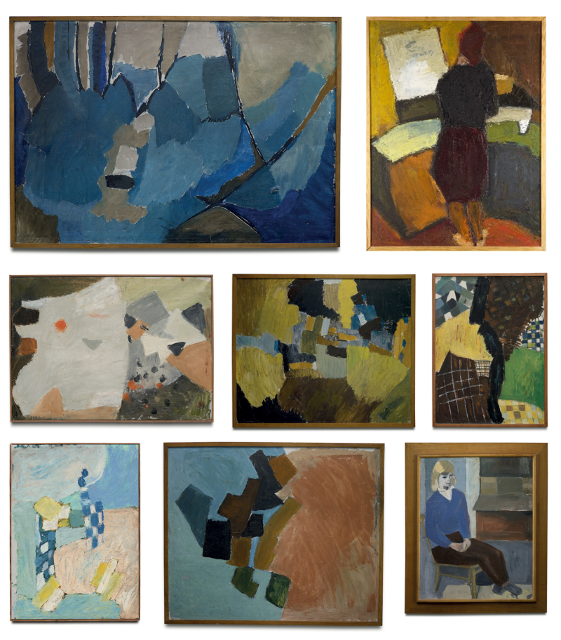 Börn Drífu: Einar, Jón, Theodóra og Guðmundur með nokkur verka hennar.
