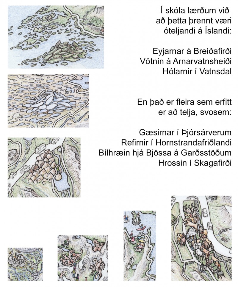 This is just a tourist map. The next maps will have volcanoes, elves, trolls, monsters, flowers, or events from Icelandic history. Smári plans to continue cycling and reach old age, doing so. Then he can draw a lot of maps before he dies. This is just the first step in publishing the Beautiful Maps of Iceland.