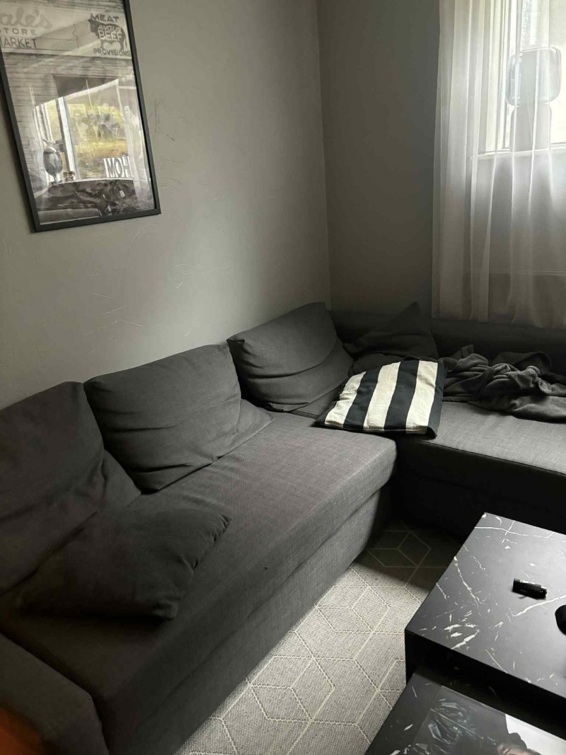 Sófinn er til sölu hjá Efnisveitunni og kostar um 400 þúsund krónur.