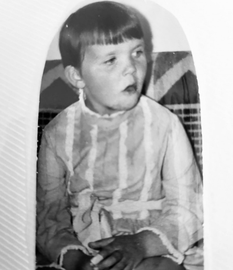 Hér er ég um það bil þriggja ára, sennilega að borða eitthvað, ég var alltaf borðandi.
