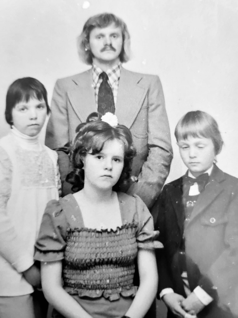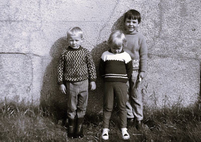 Höfundur til hægri, bróðir hennar til vinstri, ónefnt barn í miðið.