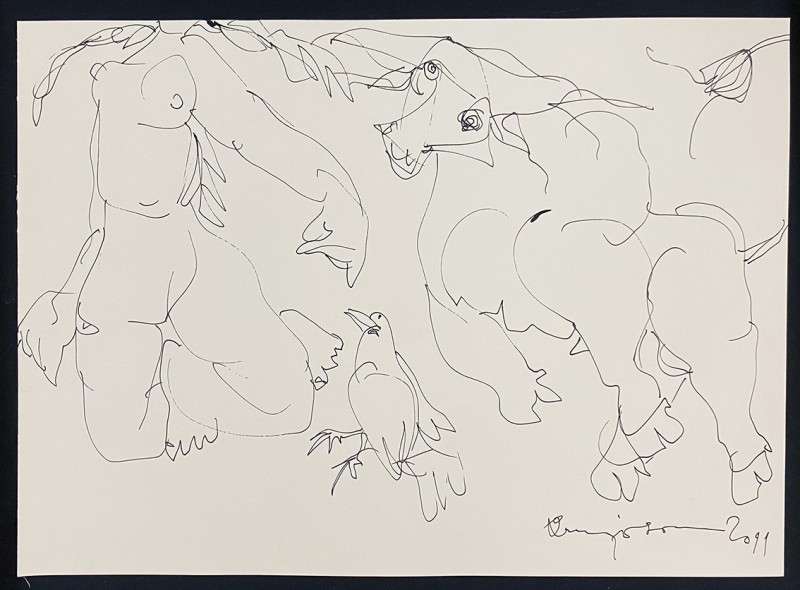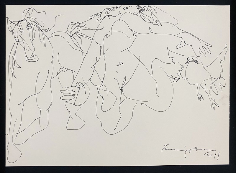 Baniprosonno was born in Bengal India in 1932 and now lives in Shimla in the Indian Himalayas. Baniprosonno is always creative and an incredibly productive artist in everything he undertakes.