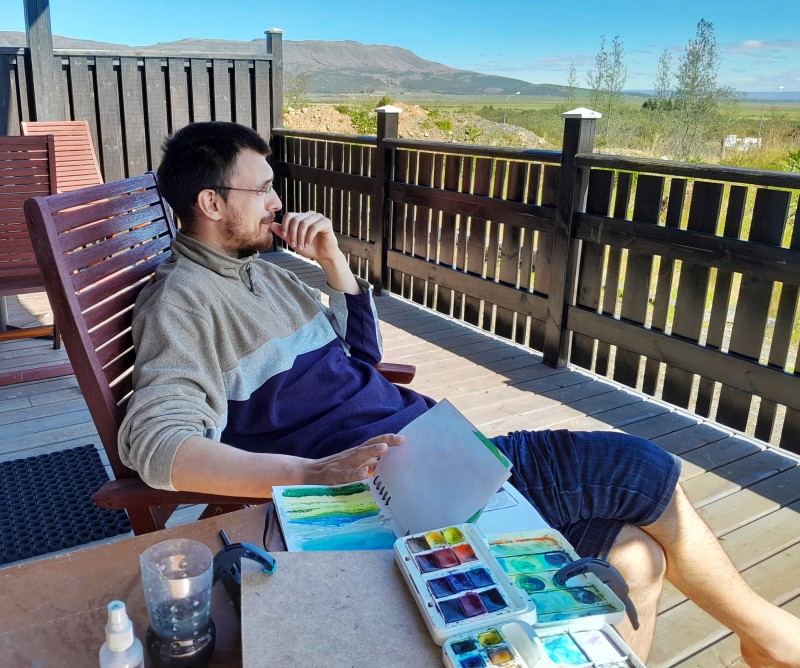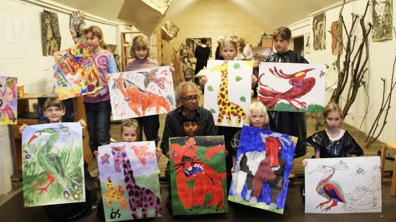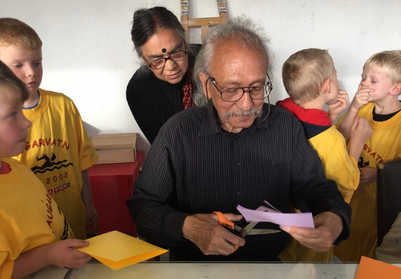 Baniprosonno has visited Iceland many times with his wife Putul, first in 2007, and since his second visit he has stayed at Gullkistan. Each time he has held several exhibitions and also conducted workshops with children, in addition to enriching everyone around him with pure joy for life.