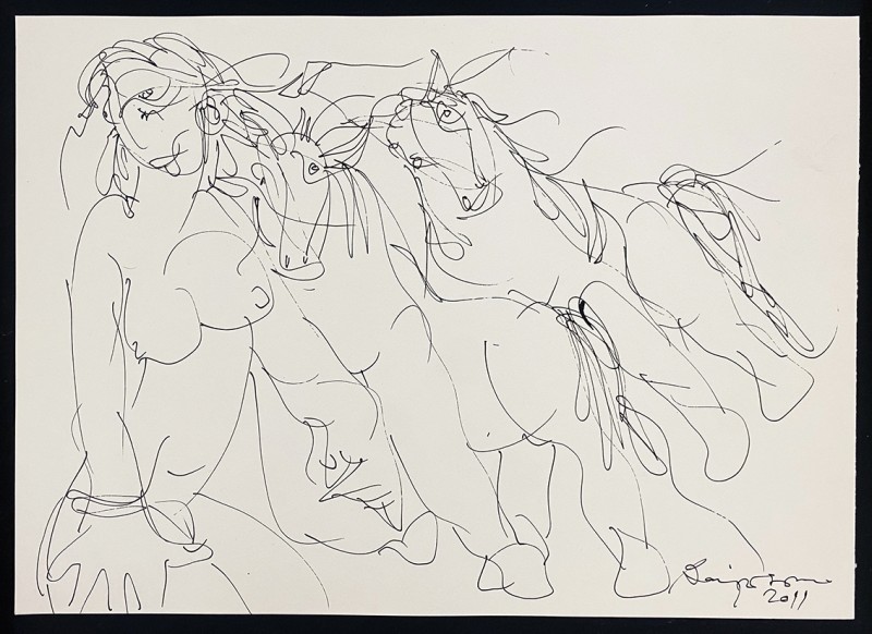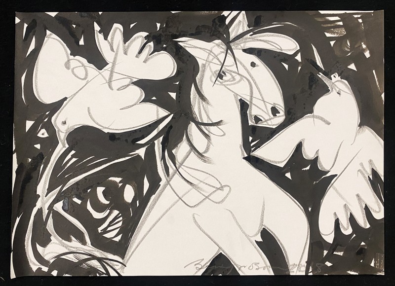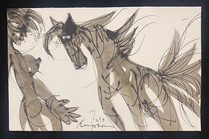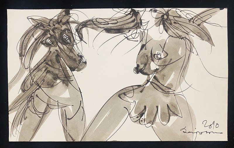 As a teenager, Baniprosonno left home, dropped out of school, and fled his family’s opposition to follow his creative calling. He survived a difficult beginning but was always determined to become an artist. He gradually gained a foothold, experimented with various forms of artistic expression, drew and painted, shaped forms in different materials, worked with ceramics, and has maintained a long and successful career as a recognized artist.